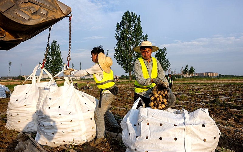 최근 린이허신구 상공가도 감자 재배 기지의 1300무 주문 감자가 풍작을 이루었으며, 예상 수확량은 무당 2500킬로그램을 초과할 것으로 보인다! 6월 15일, 기자는 해당 감자 재배 기지에서 밭의 수확기가 굉음을 내며 포클레인이 바쁘게 움직이고, 130여 명의 노동자들이 환하게 웃고 있는 모습을 보았다. 과학기술의 역량 강화와 주문 보장으로 마을 공동체와 농가가 '이중 소득 증가'의 기쁨을 함께 누리고 있으며, 새로운 농촌 진흥의 그림이 이하 신구에서 서서히 펼쳐지고 있다.