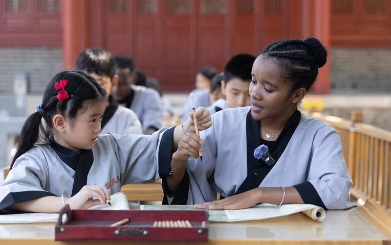 마다가스카르 출신 린이 대학교 유학생이 현지 청소년과 전통 예의를 배웠다.