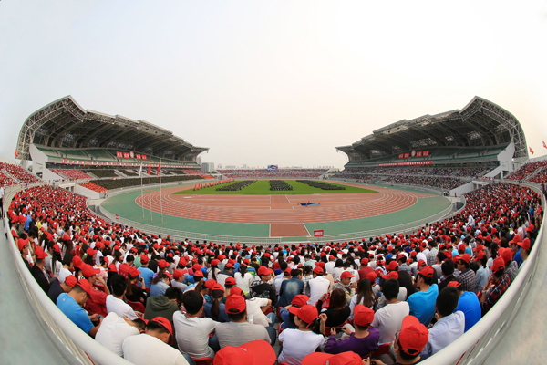 린이대학교 새 운동장 부지면적이 95387평방미터이며 건축 면적이 40915평방미터이다. 남북 길이는 300미터이며 동서 넓이는 250미터이다. 동,남,서,북 방향 총 4개의 계단식 관람석이 설치되어 38000명 관객을 용납할 수 있다. 시민들이 앞으로 새 운동장에서 체육경기 및 각종 공연을 관람할 수 있다.