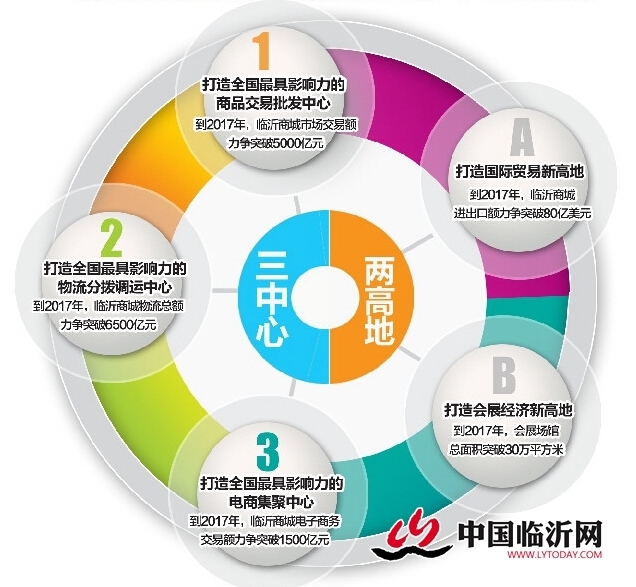 1. 중국 가장 영향력이 있는 상품거래 도매 중심을 만들도록 노력한다. 2017년까지 린이상성 거래액은 5000억 위안을 돌파할 계획이다. 2, 중국 가장 영향력이 있는 물류 운송 센터 발전하도록 한다. 2017년까지, 린이상성 물류 총액이 6500억 위안 돌파할 계획이다. 3, 중국 가장 영향력이 있는 전자상 집산지로 발전하도록 한다. 2017년까지, 린이상성 전자상 거래액이 1500억 위안 돌파할 것이다. A, 2017년, 린이상성 수출입 총액이 80억 위안 돌파하도록 한다. B, 2017년까지, 린이상성 전시센터 총 면적이 30만 평방미터를 돌파하도록 한다.