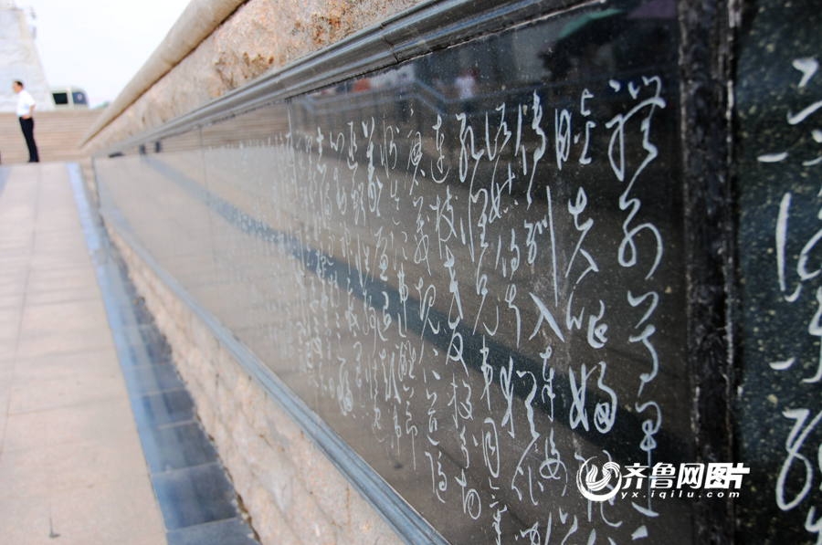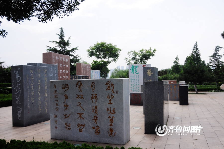 서법광장에서 역대 및 현대 유명 서예가들의 작품을 집중시켰다. 제1기 공사는 왕희지, 안진경(顔眞卿), 미불(米芾) 등 1080명 서예가들의 1320 폭 서예 작품을 조각하였다. 총 글자 수가 10만에 달하였다. 6000여 년의 중국 글자의 변천, 중국 서예문화 발전 역사가 서법광장에서 전시되어 있다.