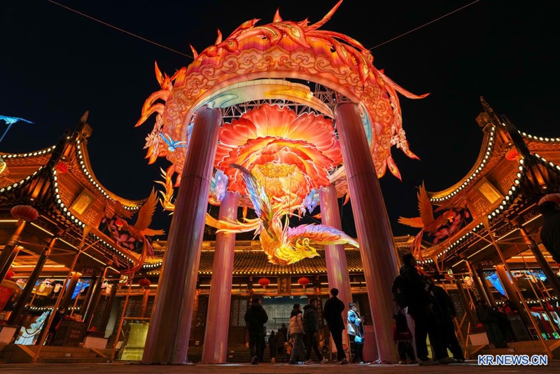 30일 난징(南京)시 친화이(秦淮)구 푸쯔(夫子)묘 대성전(大成殿) 관광지를 찾은 시민과 관광객이 다양한 등불을 구경하고 있다.