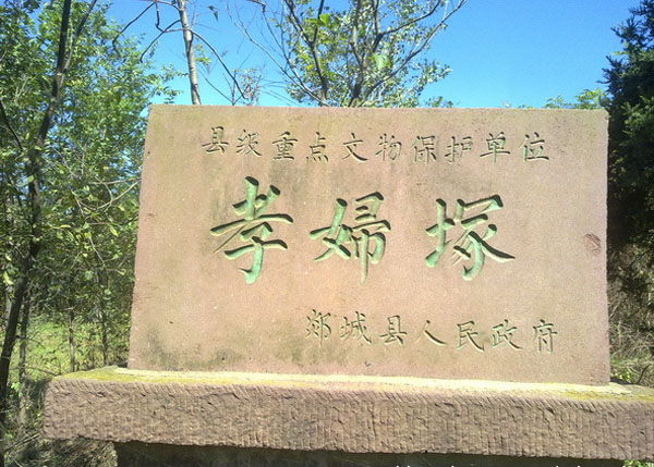 동해 효부의 무덤 효부(효도를 다한 며느리)전설은 제일 처음《한서》에서 기록 되였다.효부는 일찍 아들을 잃은데다 남편까지 여의였다. 하지만 시어머니를 모시는 일에서는 정성을 다 하였다.시어머니는 며느리를 연루시키지 않으려고 목을 매여 자살까지 하였지만 효부는 이로 인해 감옥에 들어갔고 끝내는 억울하게 죽게 되였다.효부 전설은 아주 높은 역사적 가치와 교육적 의의가 있어 사회의 조화에 유리하다. 편집자:辛颖