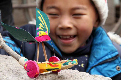탄청(郯城) 목팽이 완구를 가지고 노는 어린이