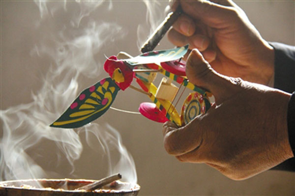 탄청(郯城) 목팽이 완구를 만들고 있음