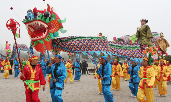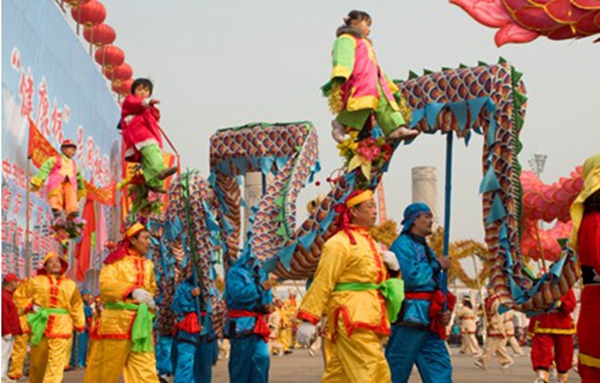용등강각(龍燈扛閣)공연 현장 용등강각(龍燈扛閣)공연 현장 ‘용등강각’은 산동성 린이시 허동구(河東區)에 기원하고 널리 퍼졌으며 170여 년 역사가 있다 . 민간용춤 특생을 가지고 넓은 땅에서만 진행할 수 있는 춤이다. 2006년 산동성 정부에 의해 용등강각이 최초의 성급무형유산으로 지정되었다.편집자:辛颖