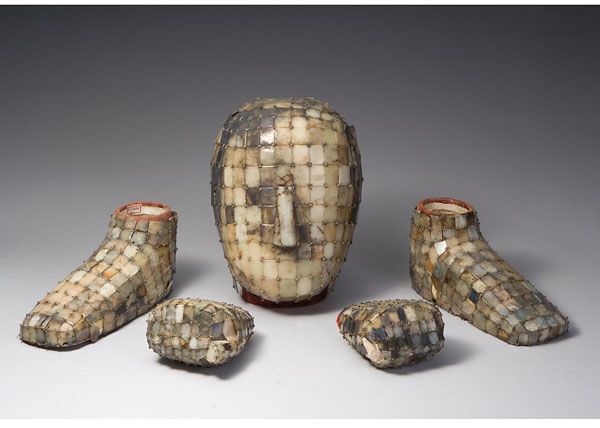 금루옥의(金缕玉衣)금루옥의는 금실로 옥을 연결하여 만든 한(漢)대 귀족의 수의(壽衣)이다.린이시 박물관에 진열된 금루옥의는 서한대의 것이다. 1978년에 린이시 홍가전(洪家店)에서 출토되었다. 총 1140 장 옥으로 만든 이 금루옥의는 머리부분, 손부분 및 발부분 총 5부분으로 구성된다. 옥은 청색을 나타나며 얇으며 표면은 반들반들하다. 편집자:田万媛